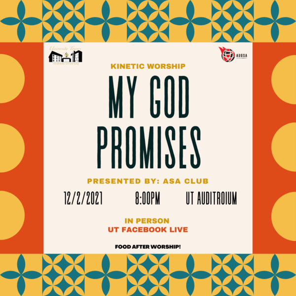 Are you a graduate student seeking to connect with God and other students? Come and join us for a time to worship together as a graduate student community! It's just 30 minutes! Our theme this semester is "My God Promises." We are looking into the Word of God to see the countless promises that God makes and keeps! Join us for music, worship, food and fellowship. You can join us in person in the University Towers auditorium or via Facebook Live (@UTTowers or @AUGSA2020). Hope to see you there!